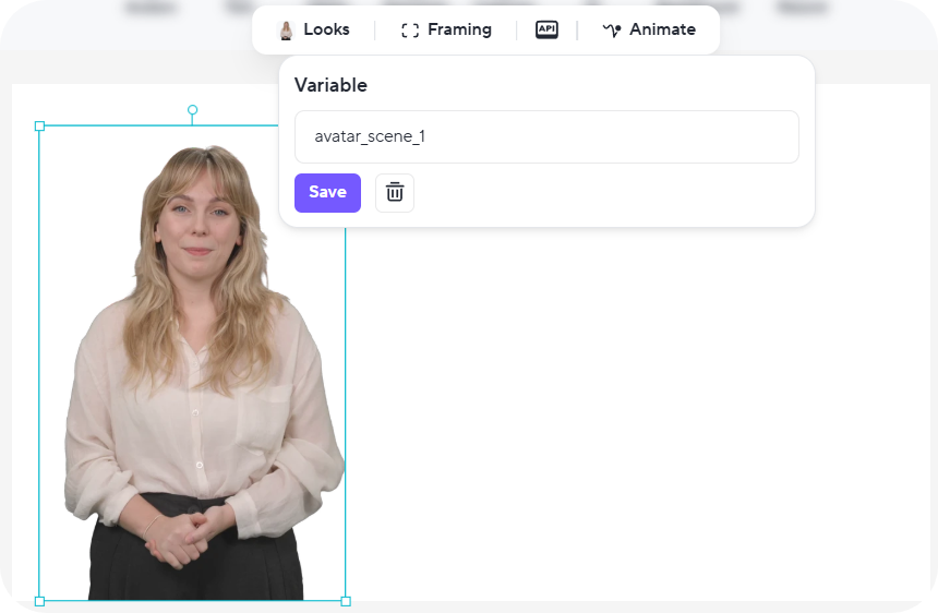 As you can see, we have assigned a variable name, i.e., avatar_scene_1 to our avatar element. In this tutorial, we will demonstrate how to change this avatar using the Template API.