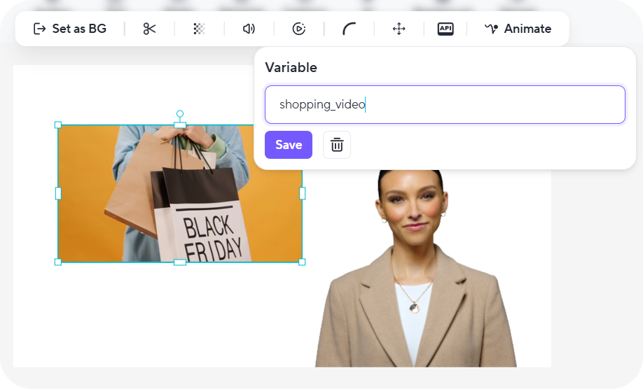 - Use the API icon in the toolbar to assign an API variable to the video.